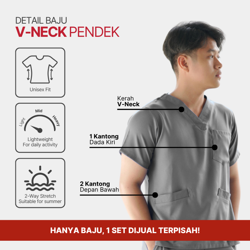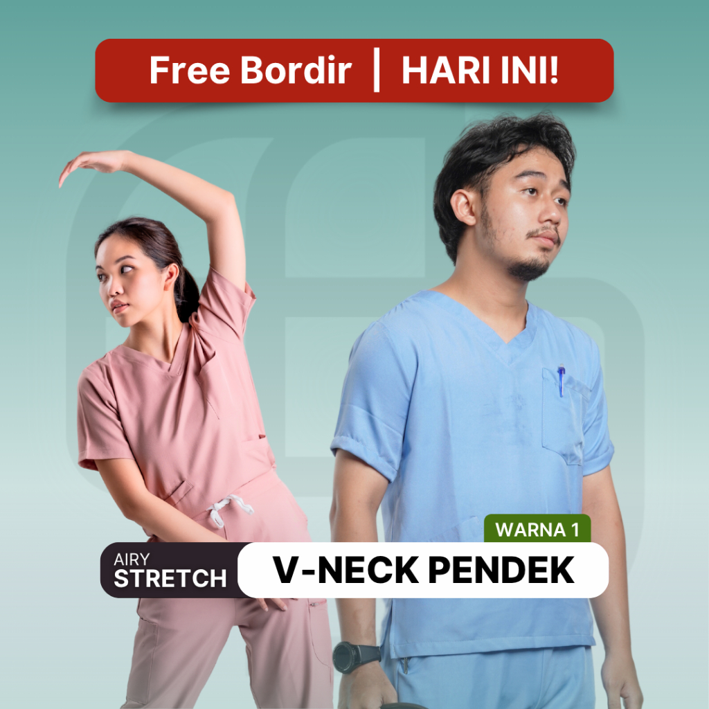 [AIRY STRETCH] Warna 1 Vneck Pendek Scrub Baju jaga OK - Stasis Medical Dokter Bidan Perawat V Neck Cargo Nakes custom k