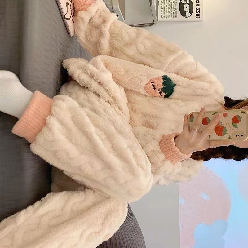 PY009 Piyama Wanita Beludru Tebal Lengan Panjang Lucu Flanel Longgar Fit to XXL