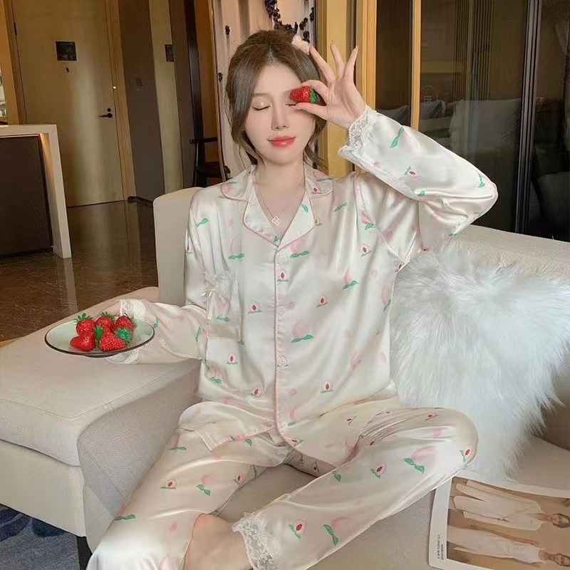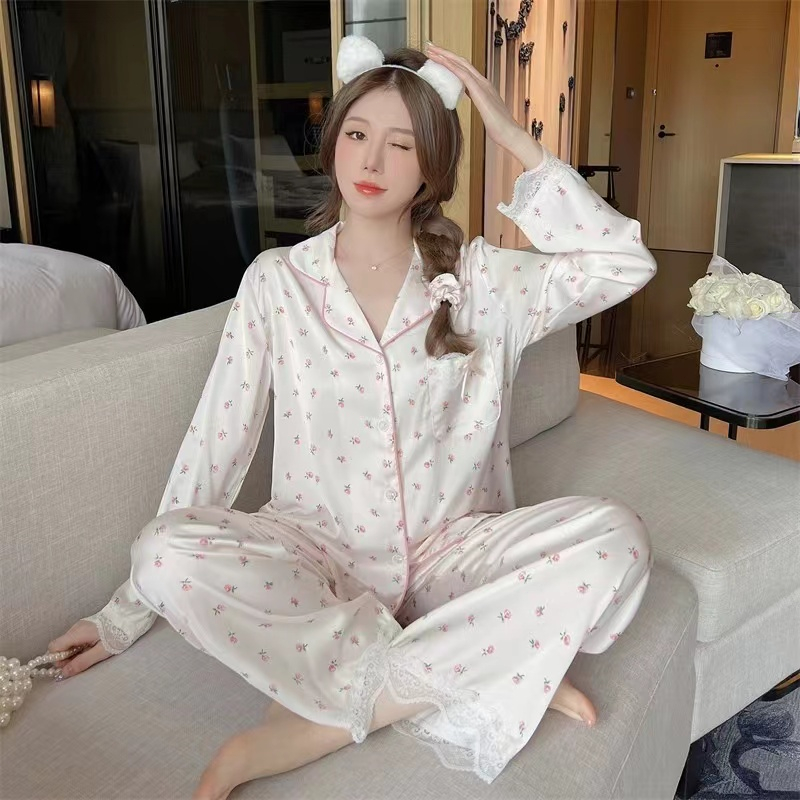 2025 versi Korea baru dari lengan panjang + celana panjang bermotif bunga kecil dapat dikenakan di luar pakaian rumah
