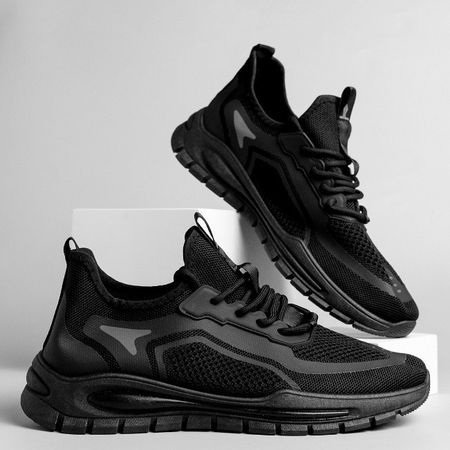 BOARD STORE Larocking - Eclipse Hitam Polos | Sepatu Sneakers Running Gym Shoes