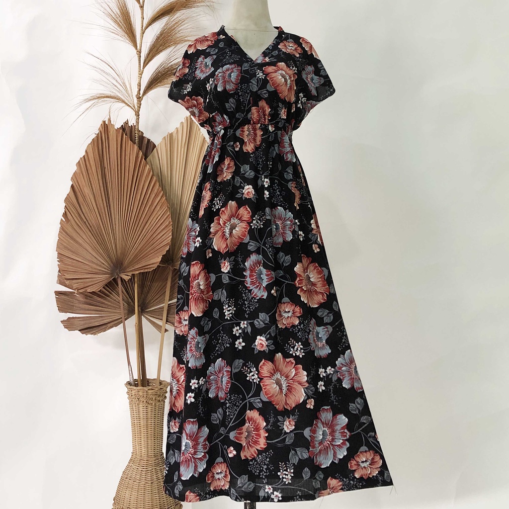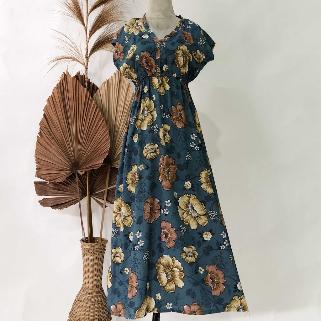 Dress Manohara Bali Panjang Motif Bunga Rayon
