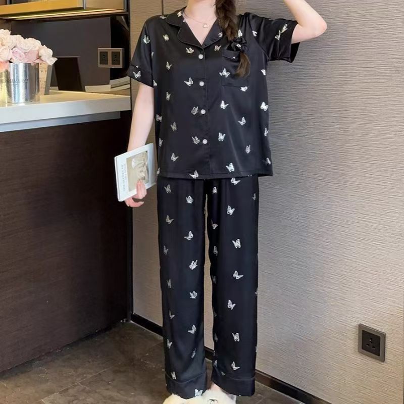 Piyama Wanita Bahan Sutra Es, Gaya Korea, Lembut Nyaman Tidur/daster/baju tidur wanita/baju tidur/piyama tidur wanita/baju tidur wanita