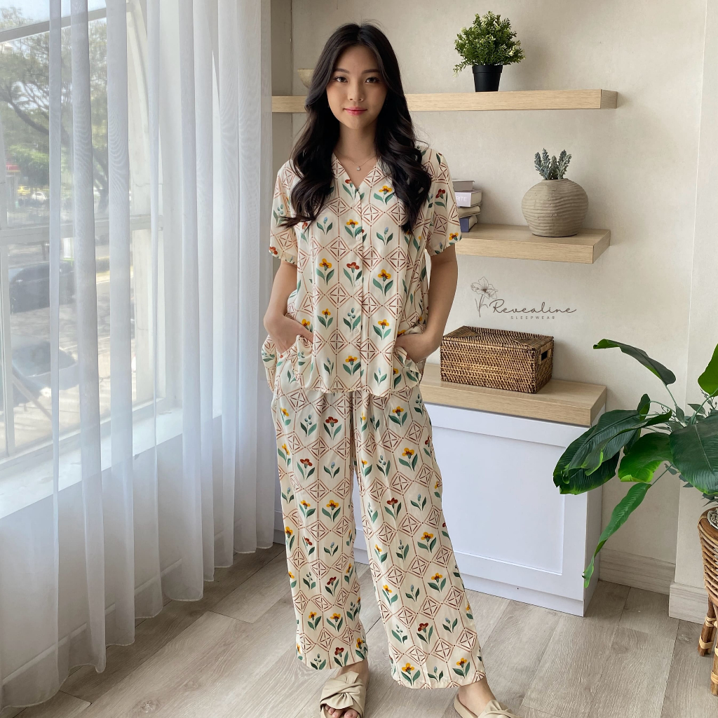 ALURA - Set Piyama Lengan Pendek Celana Panjang Premium Wanita|Baju Tidur Rayon Busui Bumil Friendly