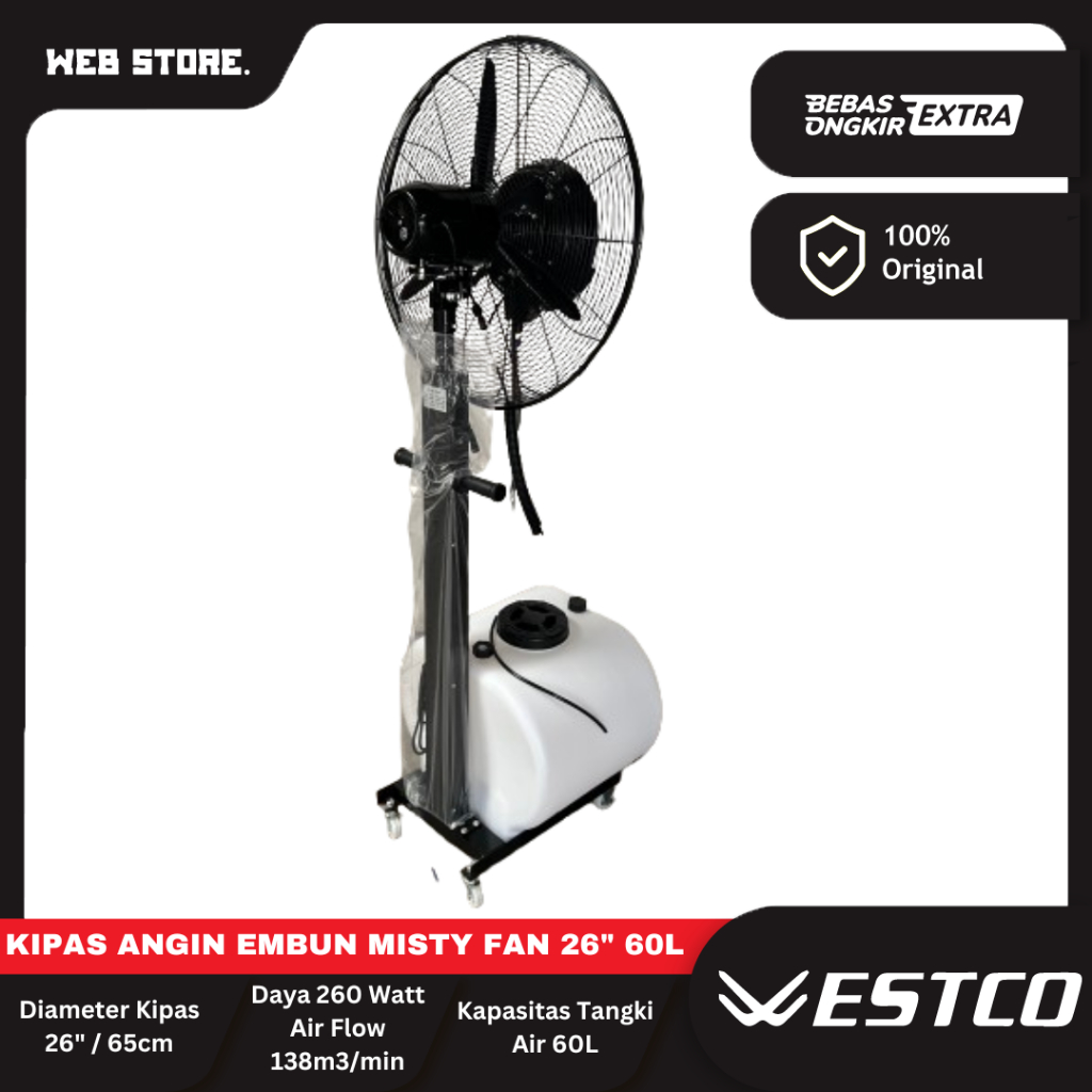 Kipas Angin Embun Westco 26 Inch Mist Fan Spray Fan Embun Kabut Halus Water Tank 60L/air cooler/pendingin ruangan