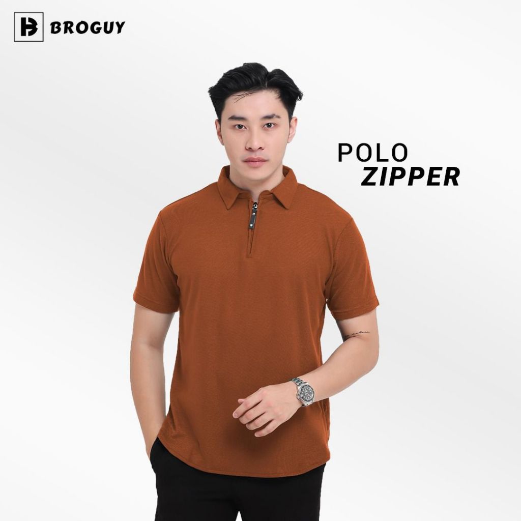 BOARD STORE BROGUY Kaos Polo Shirt Pria Kerah Lengan Pendek Zipper - Light Brown