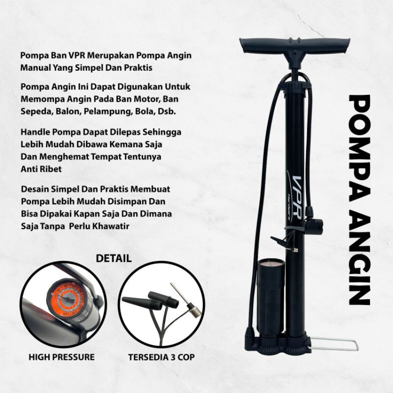( Pplus ) Pompa Angin Sepeda Motor Mobil Tabung Meter Black / High Pressure Pompa Angin VPR Portable Untuk ban mobil dan pompa angin VPR motor