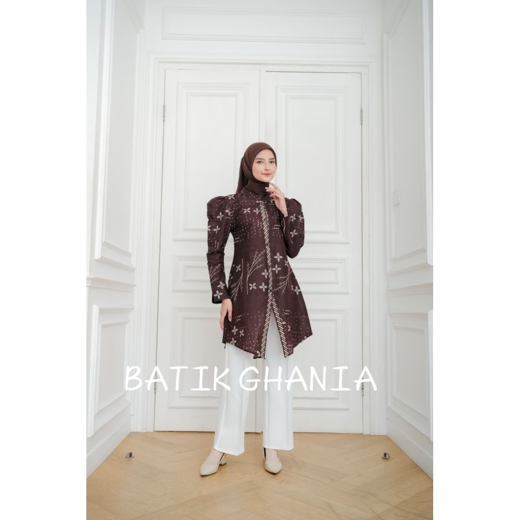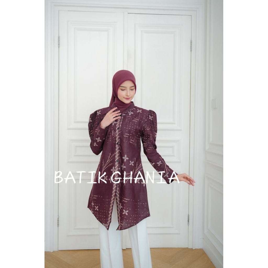 Atasan Batik Wanita Modern Tunik Batik Kantor Baju Tunik Wanita Lengan panjang Motif SERUNI