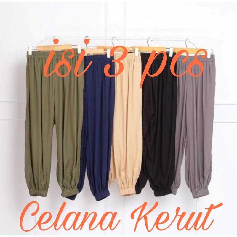 Promo isi 3 Pcs Celana Aladin Kerut Bawah Wanita Panjang Bahan Kaos Pe/Celamis Celana Daleman Gamis Wanita Termurah