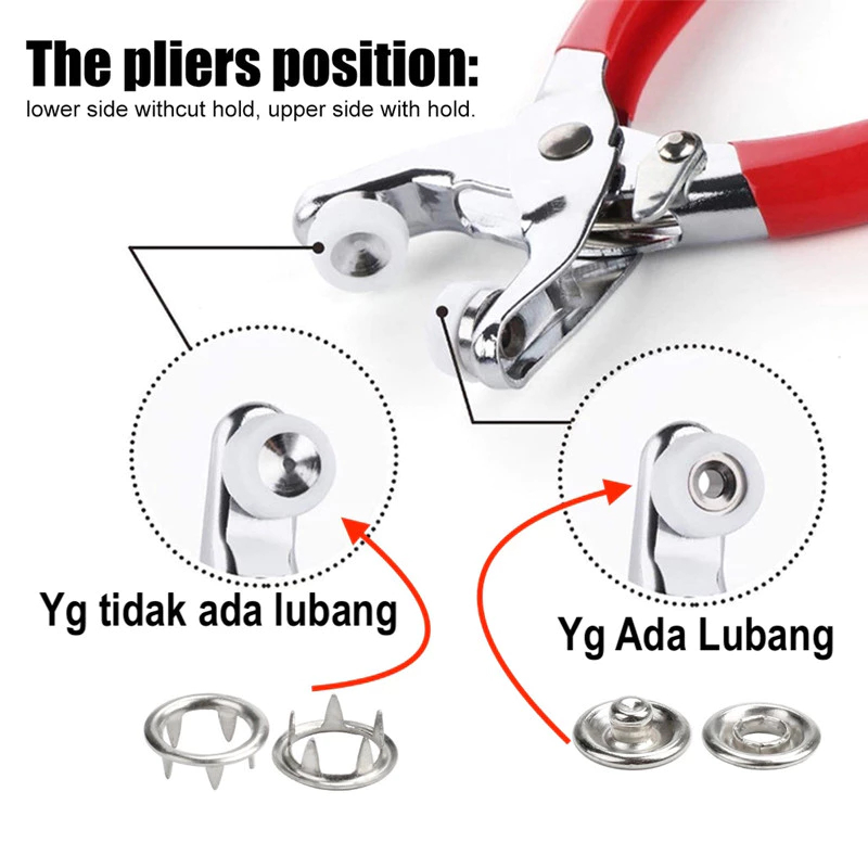 200Pcs Tang Alat Pasang Press Kancing Jepret Cetet Anti Karat Tang Pengencang Kancing Snap Untuk Peralatan Menjahit Kancing