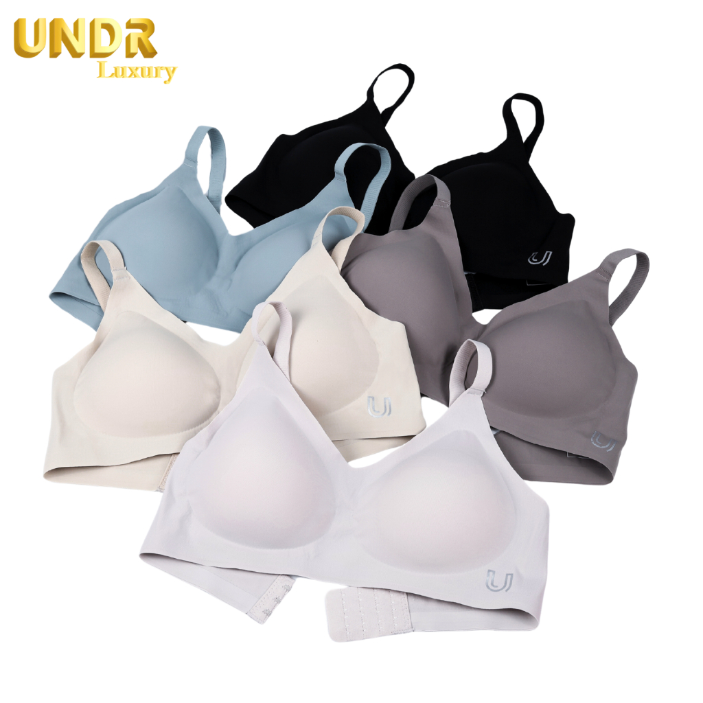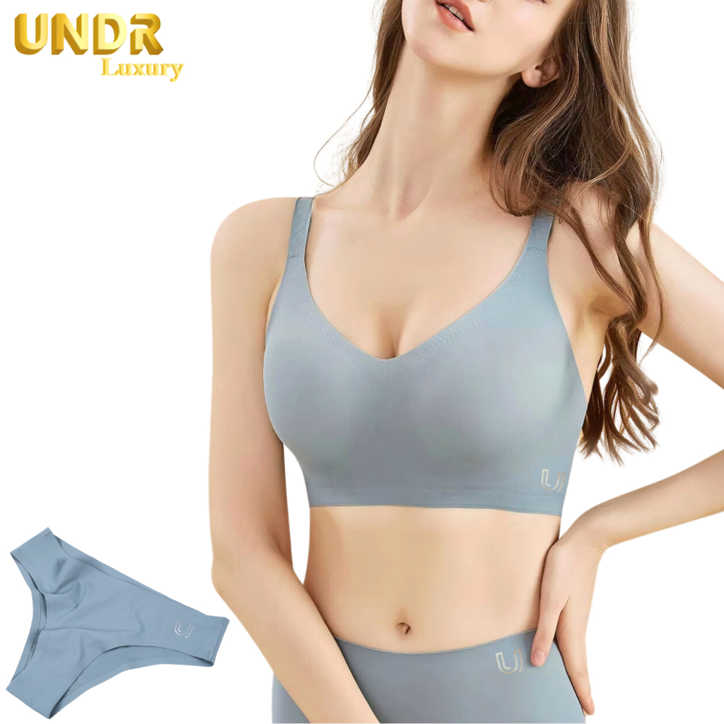 UNDR Set Pakaian Dalam Seamless Wanita Luxury 1 Set Bra & Celana Dalam Perempuan Quality Anti Jeplak One BH Satu Setelan CD Kolor Dalaman Lembut Halus Dingin Semi Push Up Women Bikini