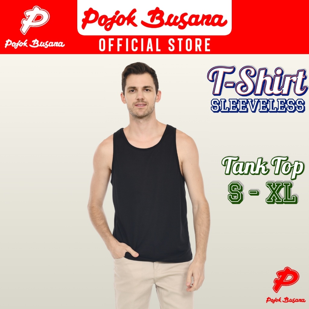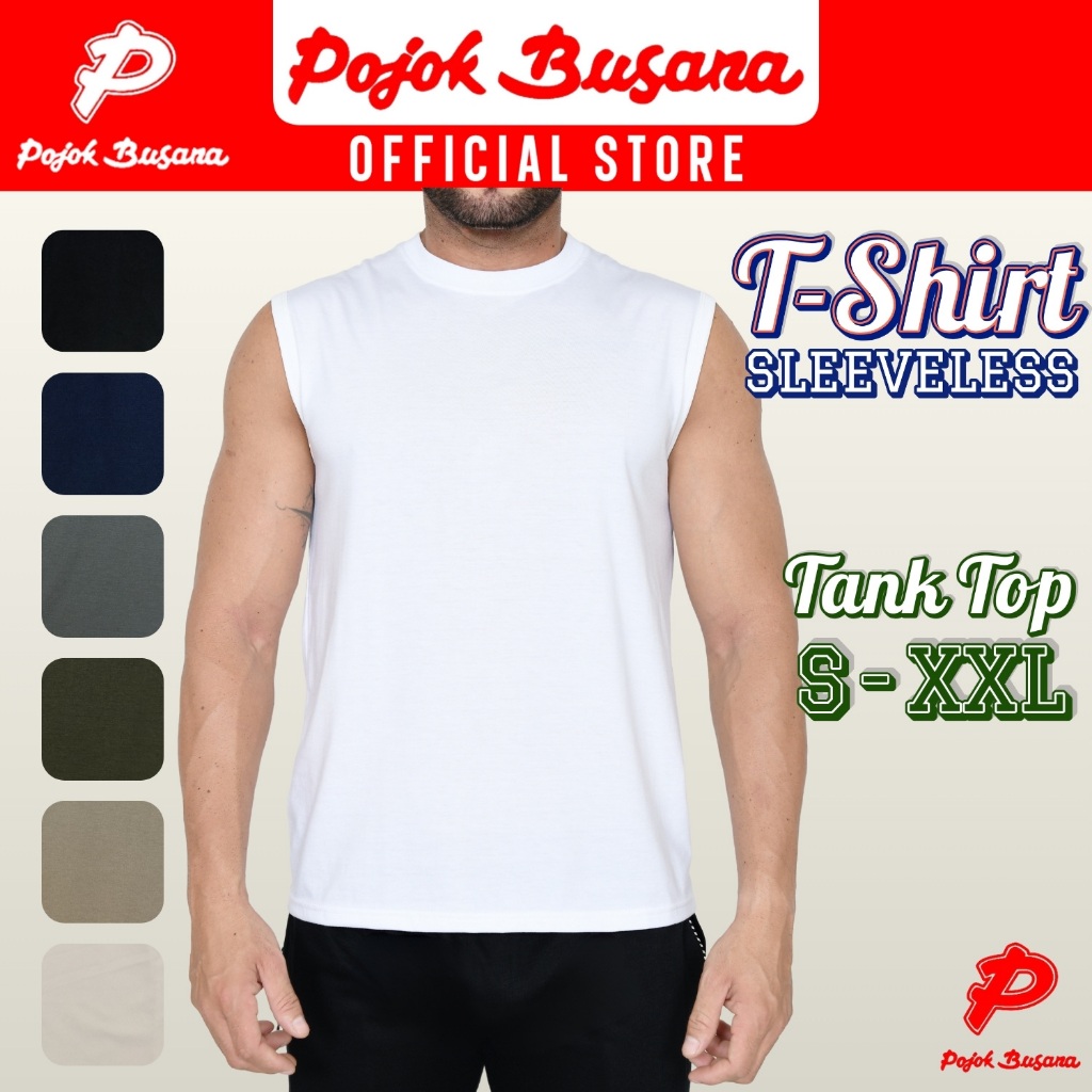 BOARD STORE Pojok Busana T-Shirt Tanpa Lengan Pria Polos - Kaos Singlet Cowok Tanktop - Tank Top Santai OlahRaga