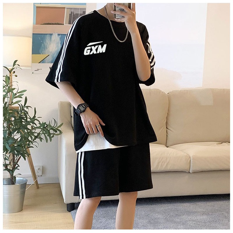Setelan pria satu set fashion outfit pria 1 set lengkap keren Baju setelan pria Kaos Oversize Pria kaos hitam baju satu