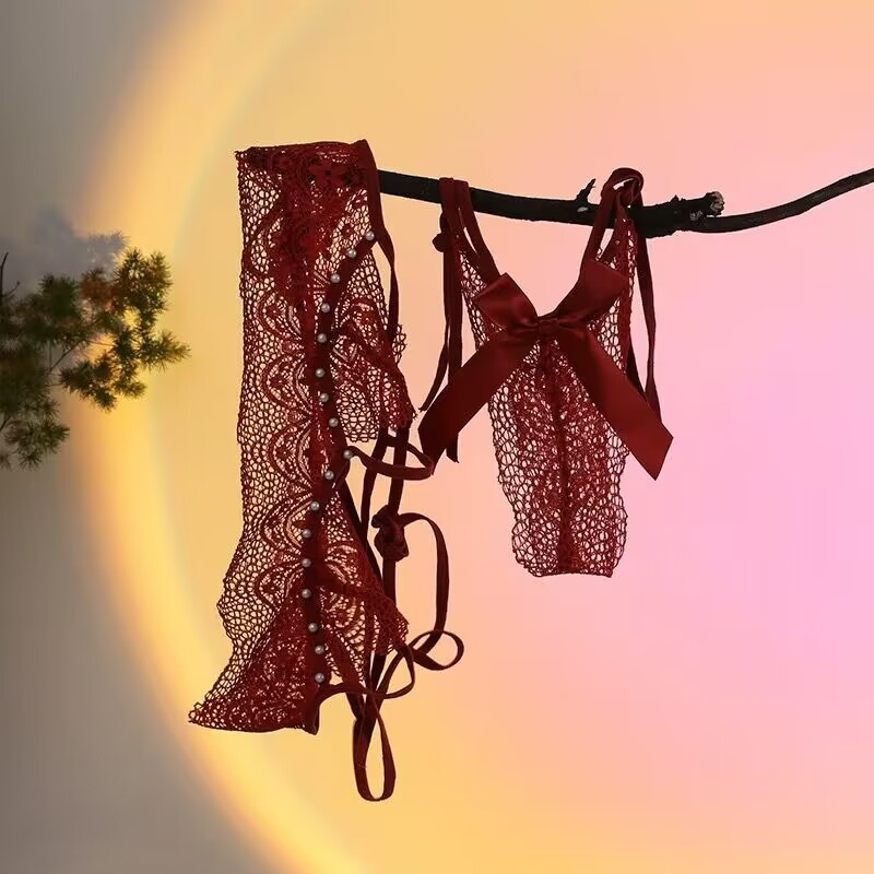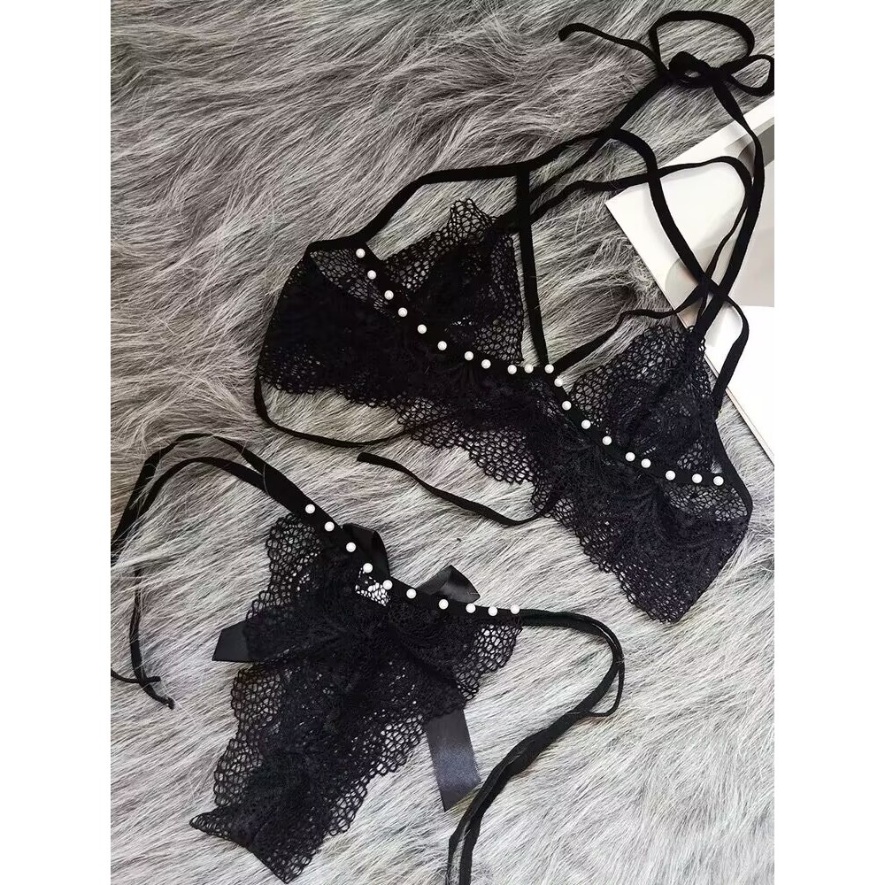 Dezenna Bikini Sexy Wanita Bra Set Renda Open Crotch Transparan hot 5B015