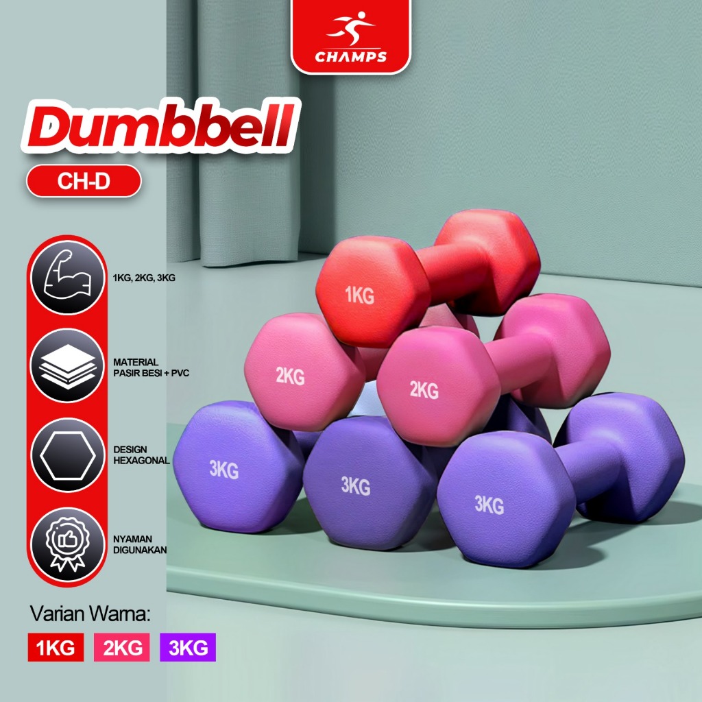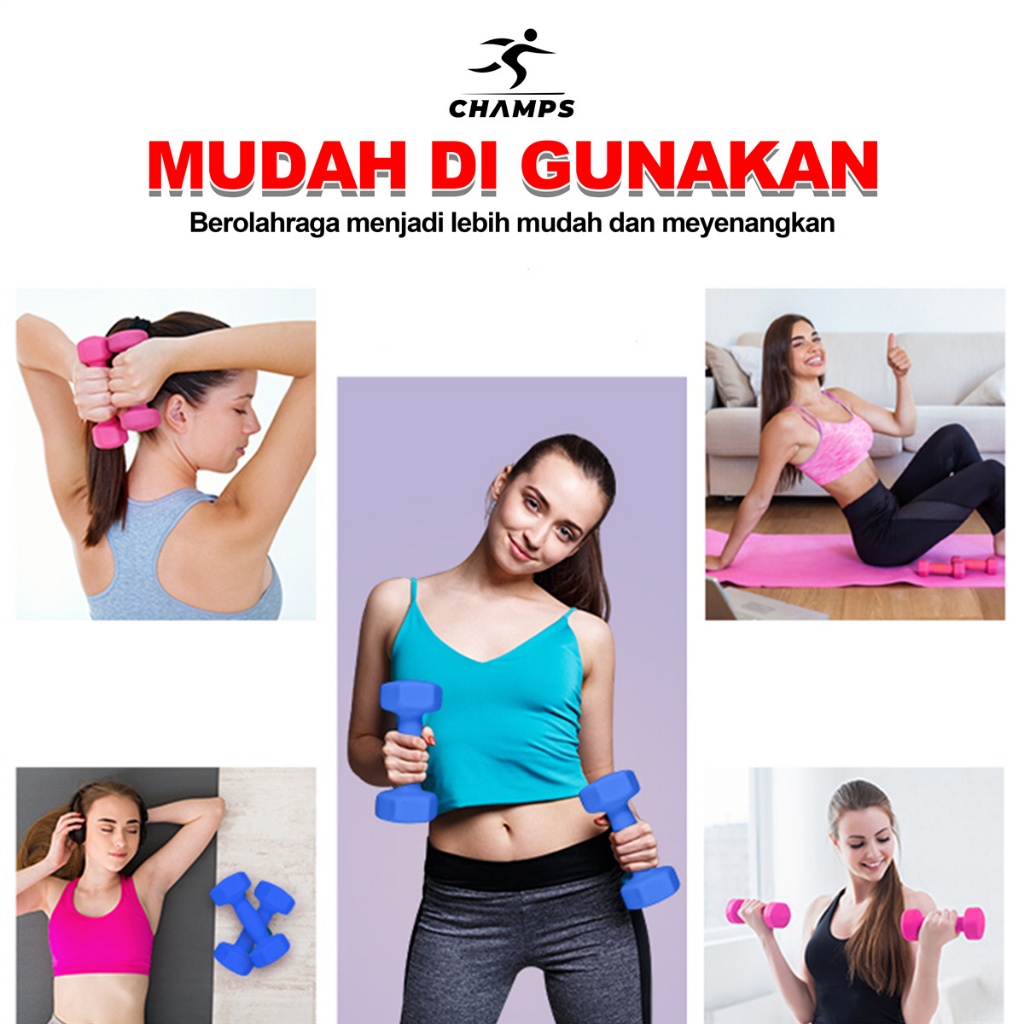 BOARD STORE CHAMPS Dumbell Murah Anti Slip – Barbel 1-3KG Vinyl Alat Gym di Rumah Ringan untuk Senam & Latihan Harian