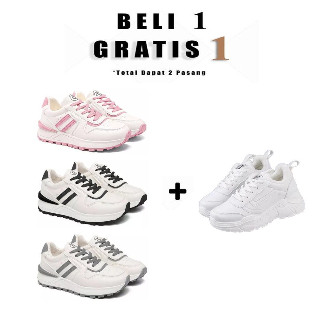 BOARD STORE Beli 1 Gratis 1 Sepatu Sneakers Wanita Putih Promo Akhir Tahun