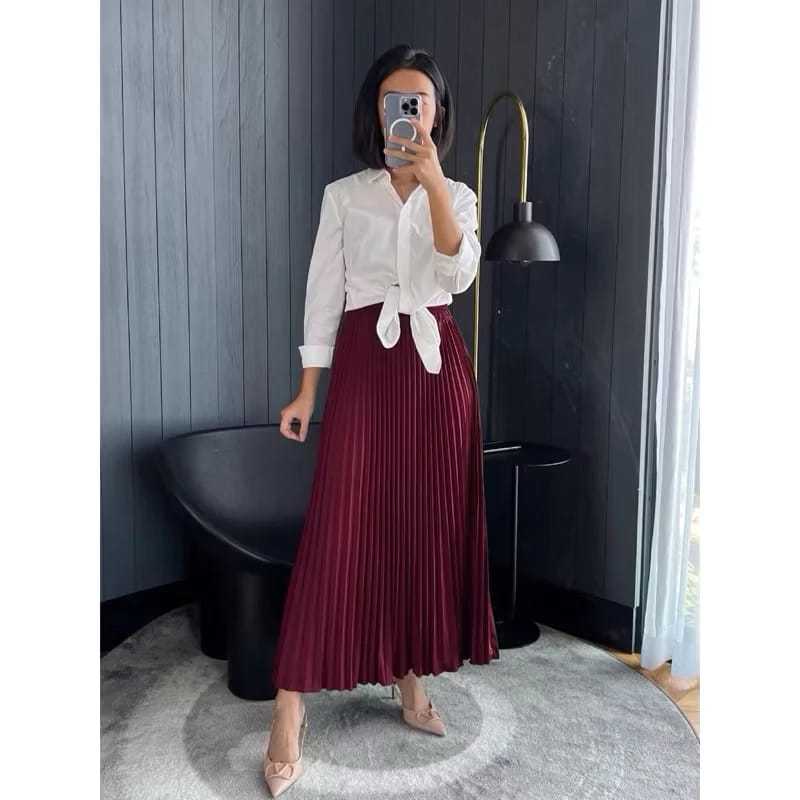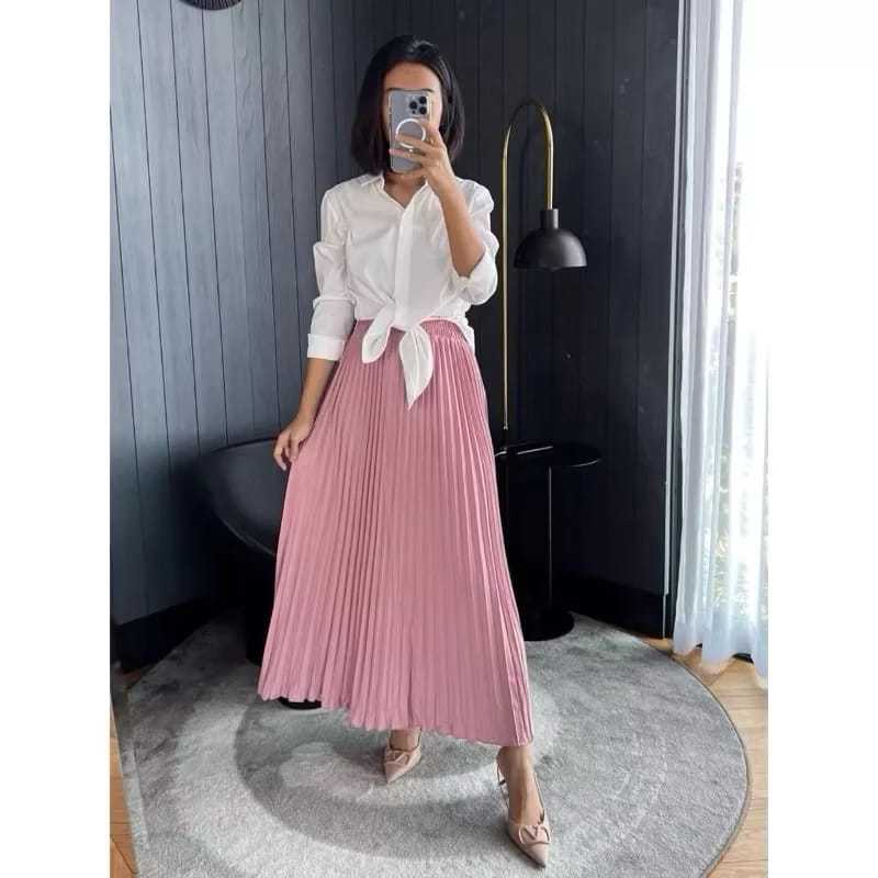 Rok Plisket Premium Jumbo / Rok plisket rempel panjang/rok plisket premium polos panjang/ rok rempel hitam plisket