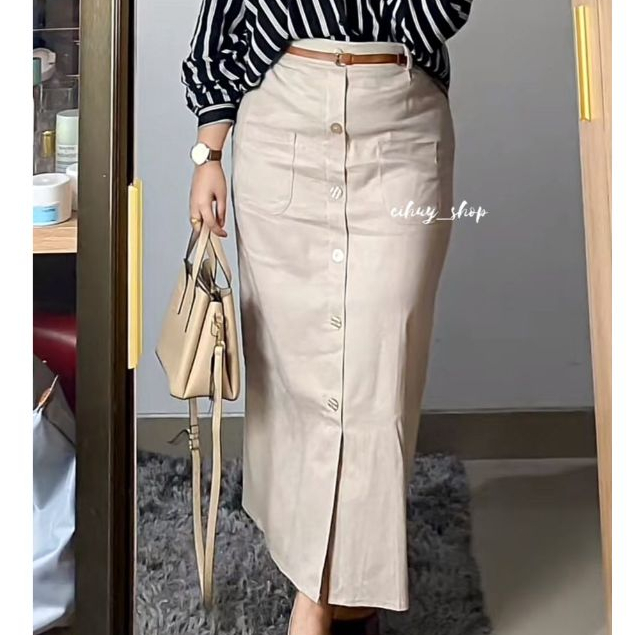 [CIHUY] - FREE BELT Luna Skirt Button Rok Jumbo Wanita Twill Terbaru
