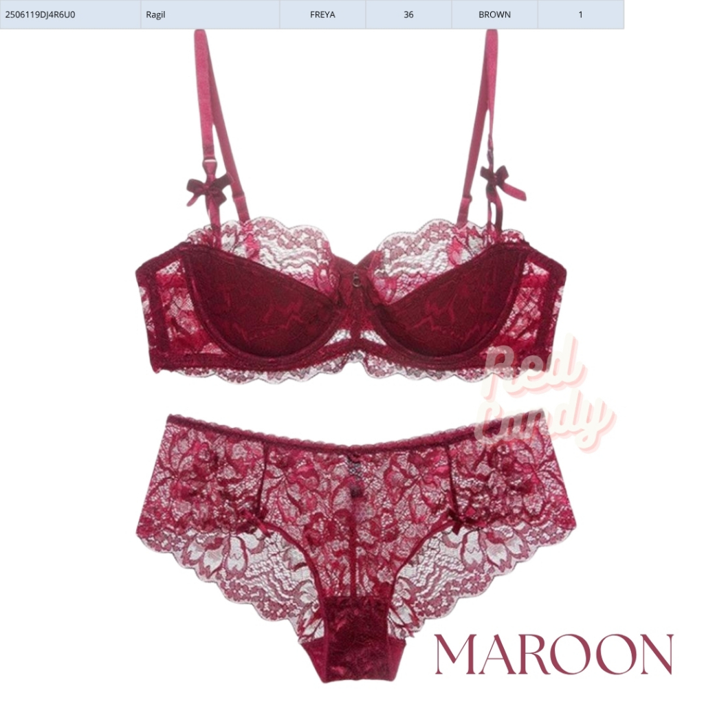 CLARISA Setelan Pakaian Dalam Wanita Bra Set Busa Tipis Half Cup Kawat Size 34-38 Cup AB RED CANDY