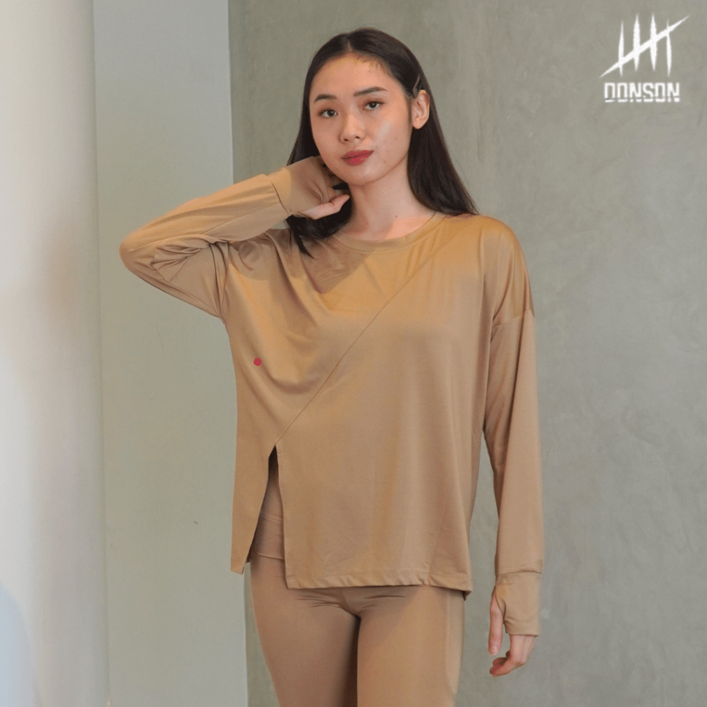 BOARD STORE DONSON Atasan Olahraga Oversize Wanita Lengan Panjang Kasual Hijab Kaos Style Depan