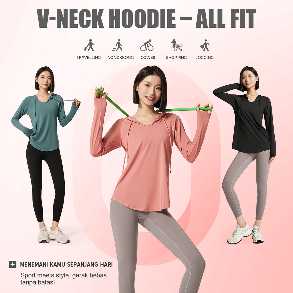 BOARD STORE KKTOP Baju Olahraga Wanita Atasan Hoodie Olahraga Kaos Lengan Panjang Sport Gym (KP001)