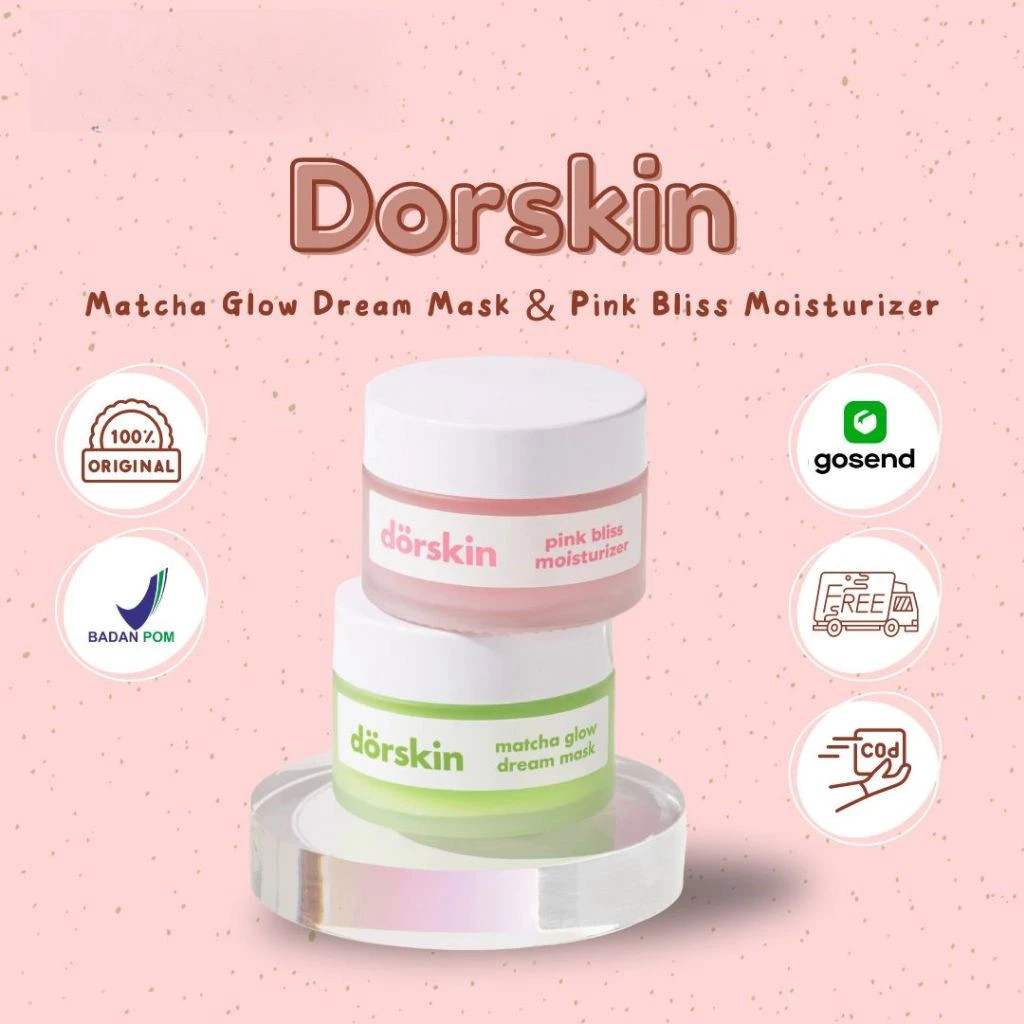 DORSKIN MATCHA GLOW DREAM MASK ( SLEEPING MASK 2IN1 ) / PINK BLISS MOISTURIZER ORI