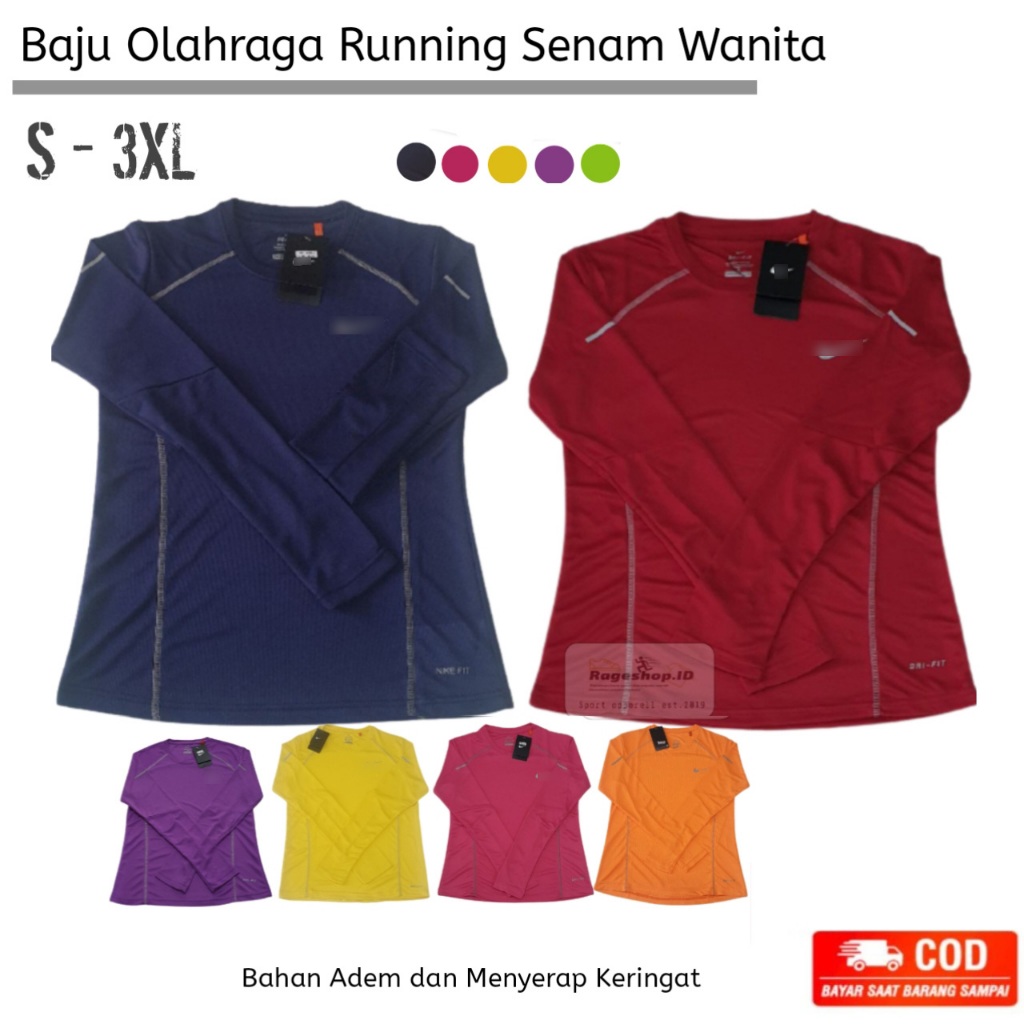BOARD STORE KAOS OLAHRAGA WANITA BAJU LARI RUNNING SENAM GYM LADIES LENGAN PANJANG DRIFIT PNKS THUMBHOLE
