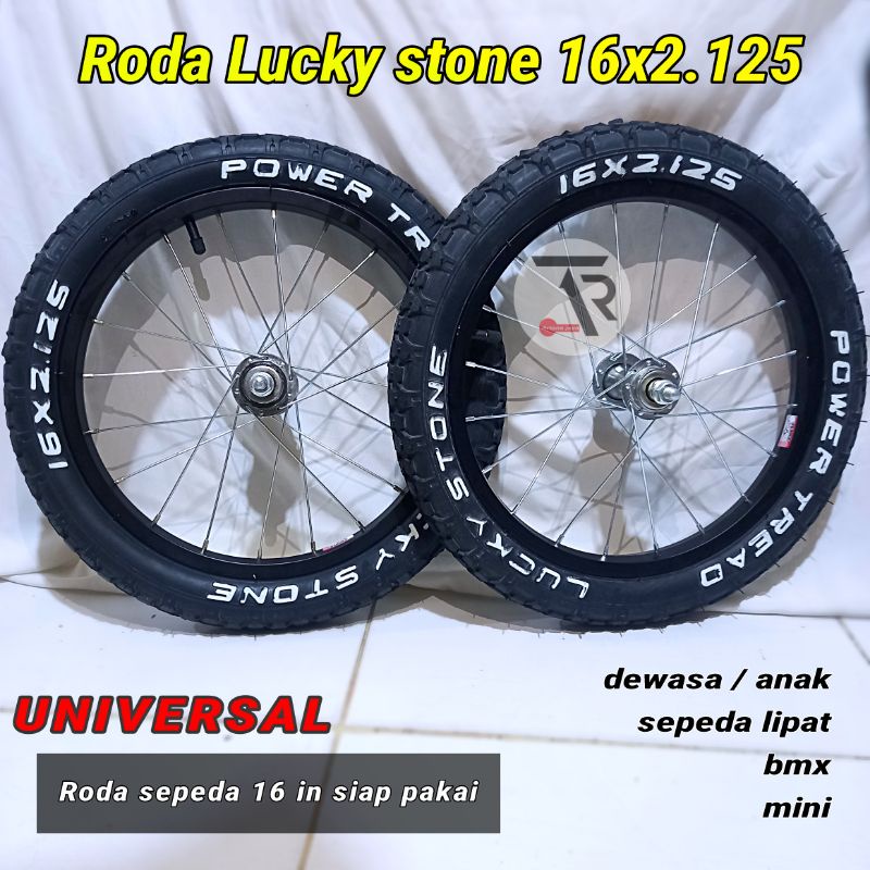 Roda sepeda 16 x 2.125 / wheelset 16in lucky stone siap pakai UNIVERSAL sepeda anak/dewasa