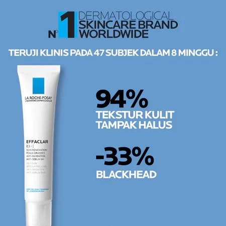 La R0che P0say Effaclar K+ Moisturizer 40ml -Membersihkan komedo tersembunyi-Menyusutkan pori-pori kulit-Mengontrol miny