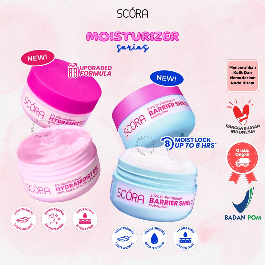 SCORA 5% Niacinamide Hydramoist Gel 45ml | 2,5% D-Panthenol Barrier Shield Moisturizer 40ml - Mencerahkan Melembapkan Ku