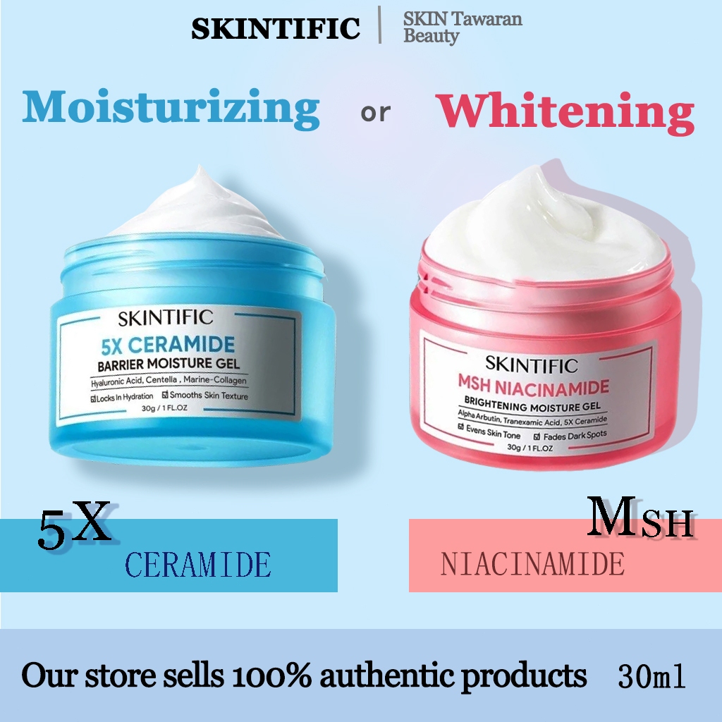 SKINTIFIC MSH Niacinamide Gel 30g – Mencerahkan Kulit / 5X Ceramide Barrier Moisturizer Gel 30g – Perbaikan Skin Barrier