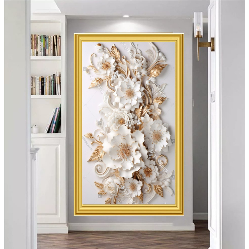 STIKER DINDING BUNGA 3D UNTUK RUANG TAMU, WALLPAPER DINDING BUNGA 3D UNTUK KAMAR, STIKER TERMURAH