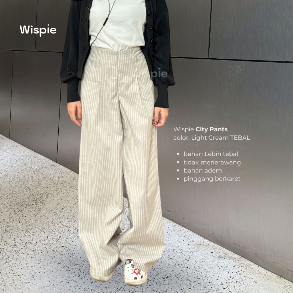 [Star] Terbaru Wispie City Pants | Celana Tidur Panjang Wanita Kantor Kuliah Motif Garis Kulot Pinstripe/ Celana Wispie