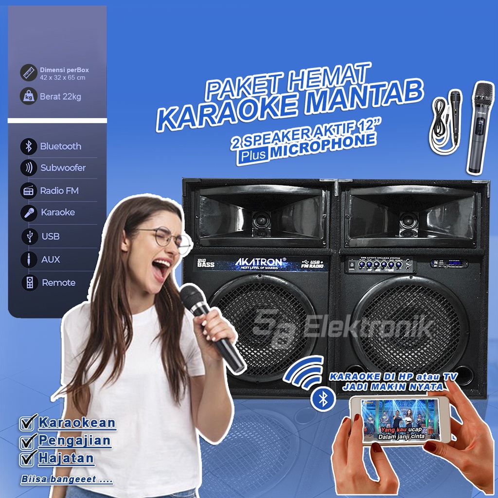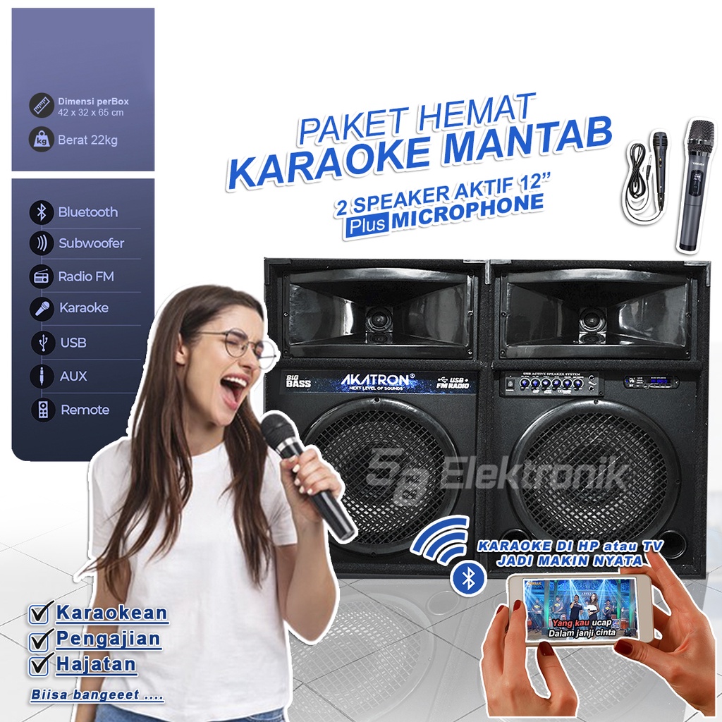 [Star]PAKET HEMAT AKATRON KARAOKE MANTAB 12 INCH BLUETOOTH SUBWOOFER MIC MICROPHONE WIRELESS 12 in inchi 12INCH HAJATAN