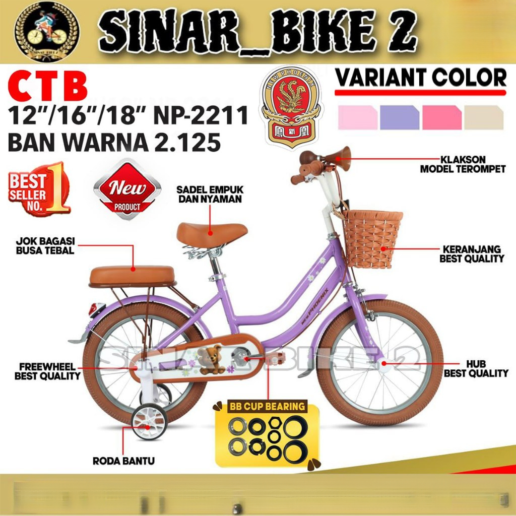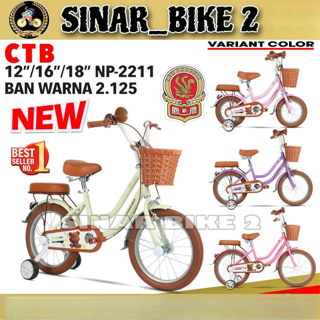 Sepeda Mini Anak Perempuan NEW PHOENIX CTB NP 2211 Keranjang Ban 2.125 Ukuran 12 16 dan 18 Inch
