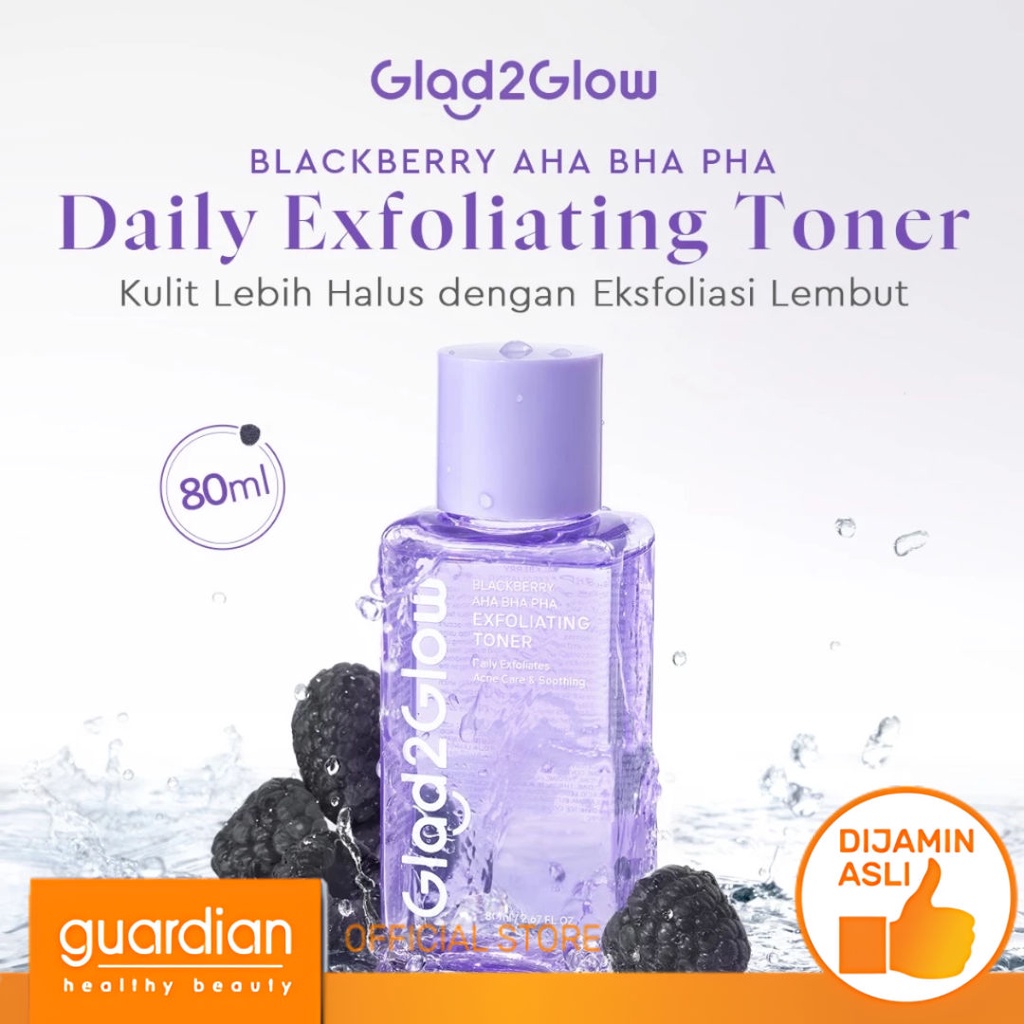Glad2Glow Blackberry AHA BHA PHA Daily Exfoliating Toner - Eksfoliasi Wajah Gently Exfoliates Removes Acnes & Bumps 80Ml