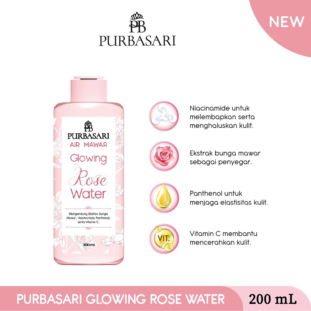 Purbasari Air Mawar Glowing Rose Water 200 ml 100 ml Toner Wajah Campuran Masker Sheet Mask