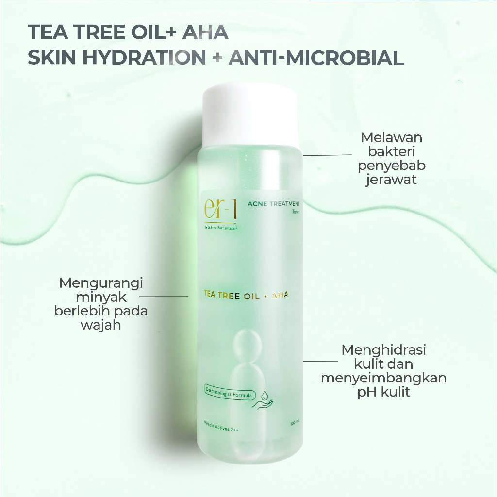 er-1 by dr. Erna Acne Treatment Toner with Tea Tree Oil + AHA - Exfoliate Cleanser pH Balancing Skincare - Toner Wajah J