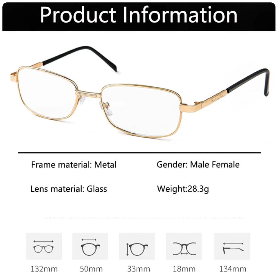Kacamata Baca Lensa Plus Pria Wanita Stainless Steel Lensa Plus Anti Radiasi +1.00 S/d + 4.00