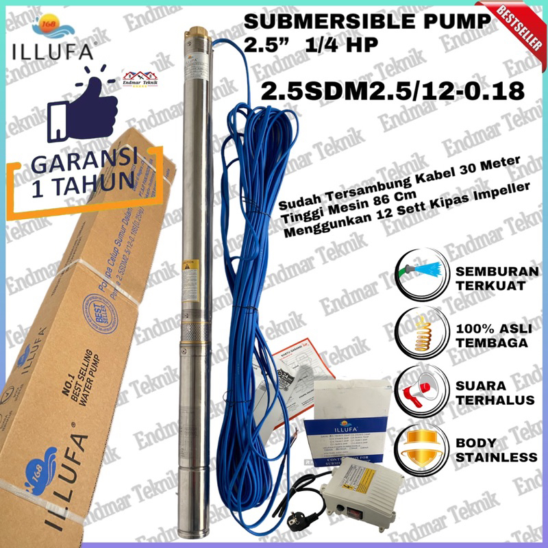 ILLUFA Submersible Pump 2.5 inch 1/4PK 0.25HP 180 watt Kabel ±30 Meter Sudah Tersambung dari pabrik langsung Pompa Celu