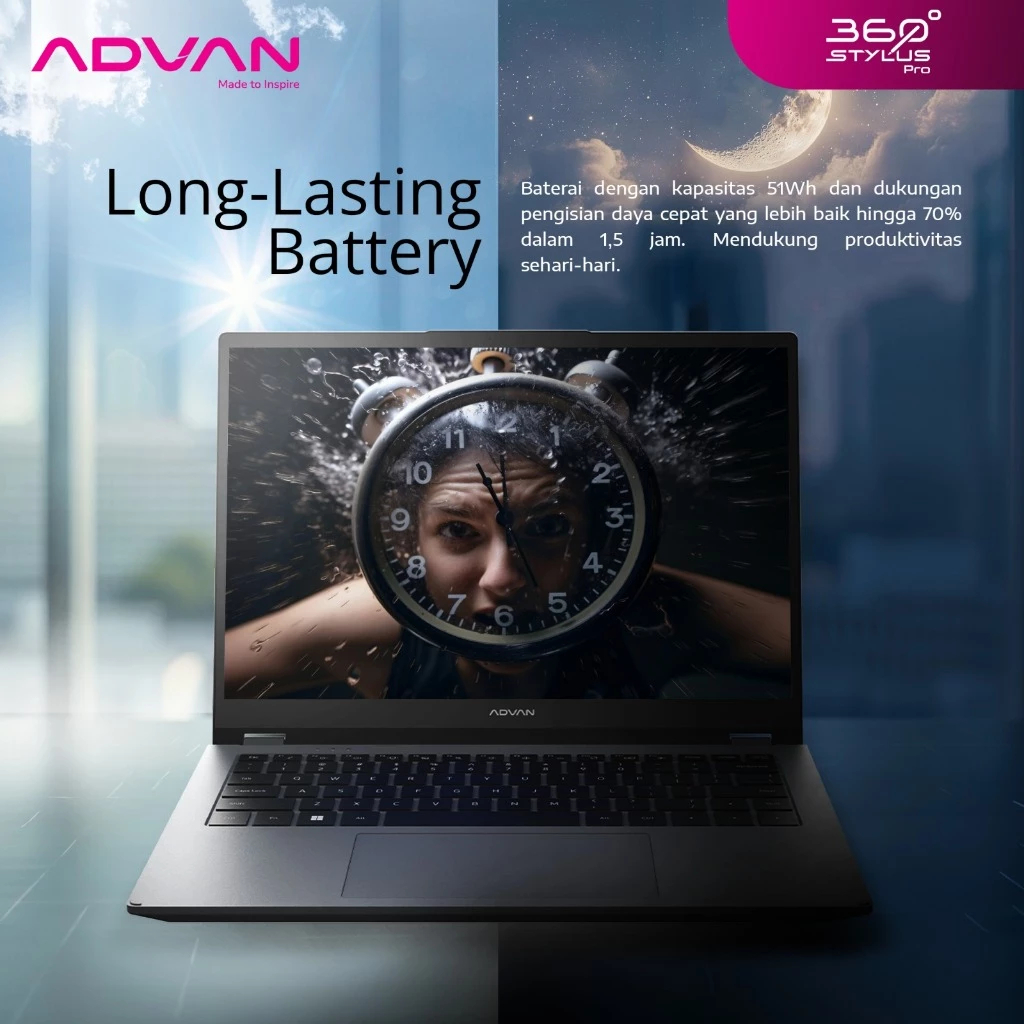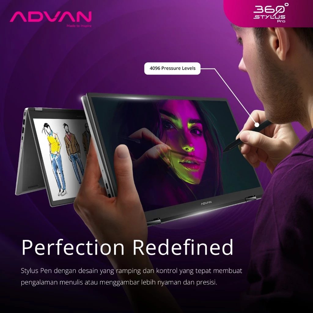 Advan 360 STYLUS PRO Intel Core i3 1215U 8GB 256GB 14" Flip Pen Touch 2 in 1 Laptop Office Kerja