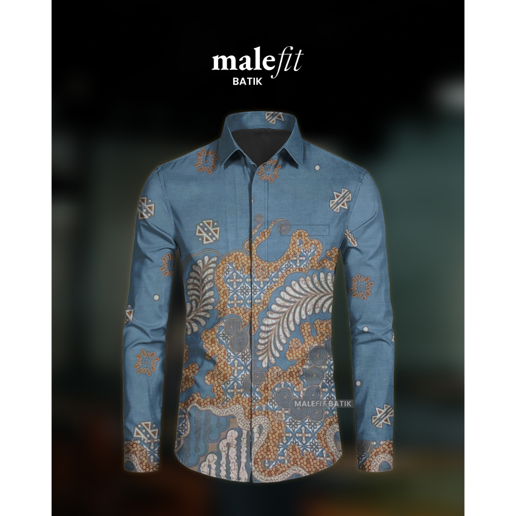 Atasan Kemeja Baju Batik Pria MOTIF SRIWIJAYA Slimfit Lengan Panjang Bahan Katun | MaleFit Batik