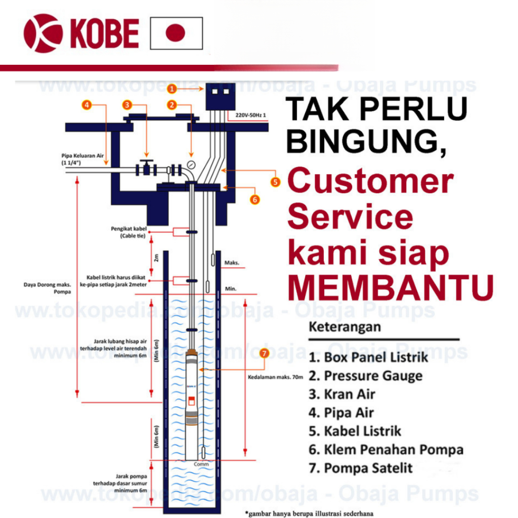 Kobe Pompa Satelit 3 inch 0.5 HP + Kabel 40 M / Pompa Submersible Kobe 0.5 HP