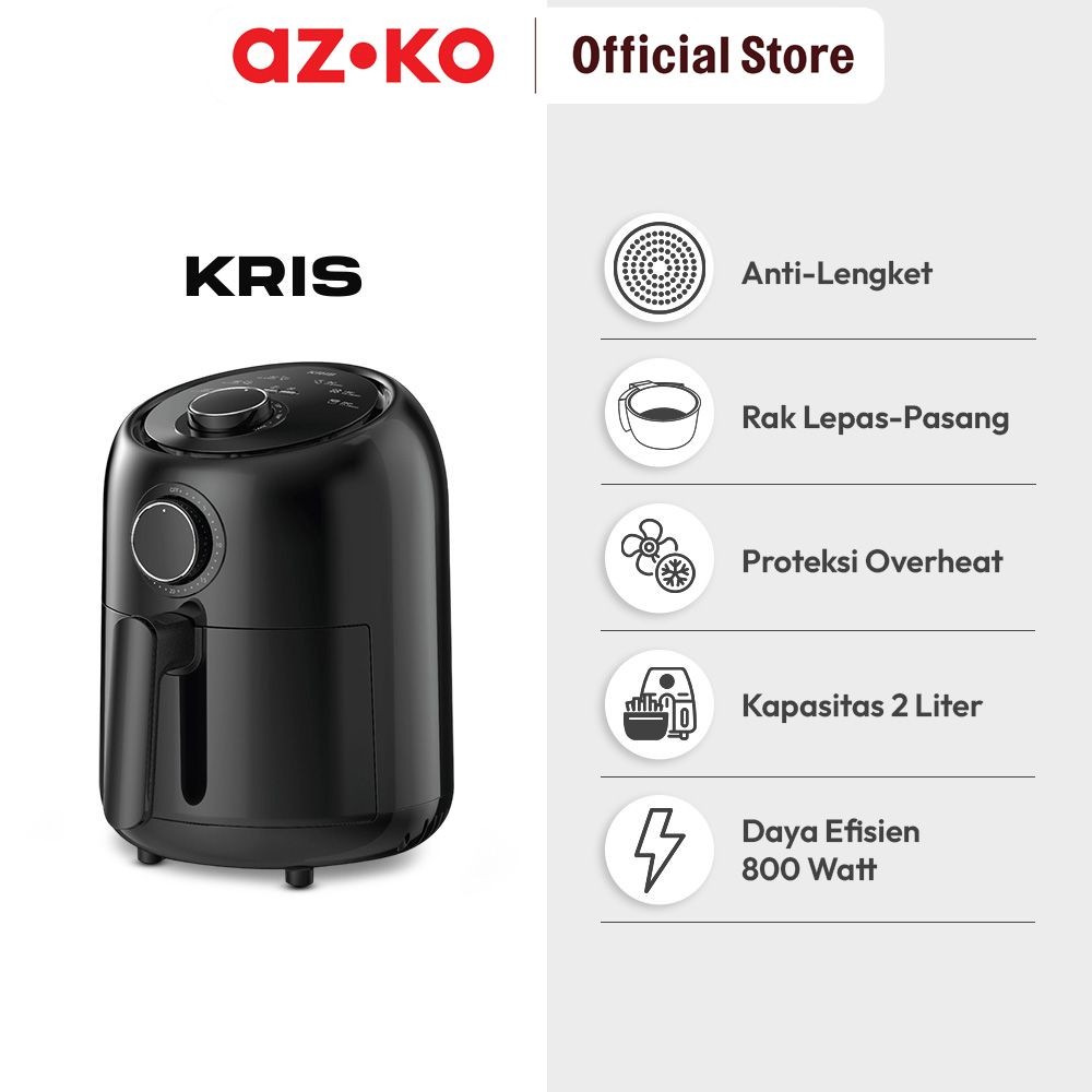 [Mall] AZKO Kris 2 ltr Air Fryer 2 Knob 800 watt - Hitam Alat Masak Goreng Pembuat Makanan Penggoreng Tanpa Minyak Elektronik Dapur