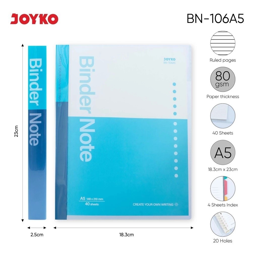 JOYKO Binder Note Ruled BN-106 A5/B5 - Notebook 20/26 Ring Pastel Lucu