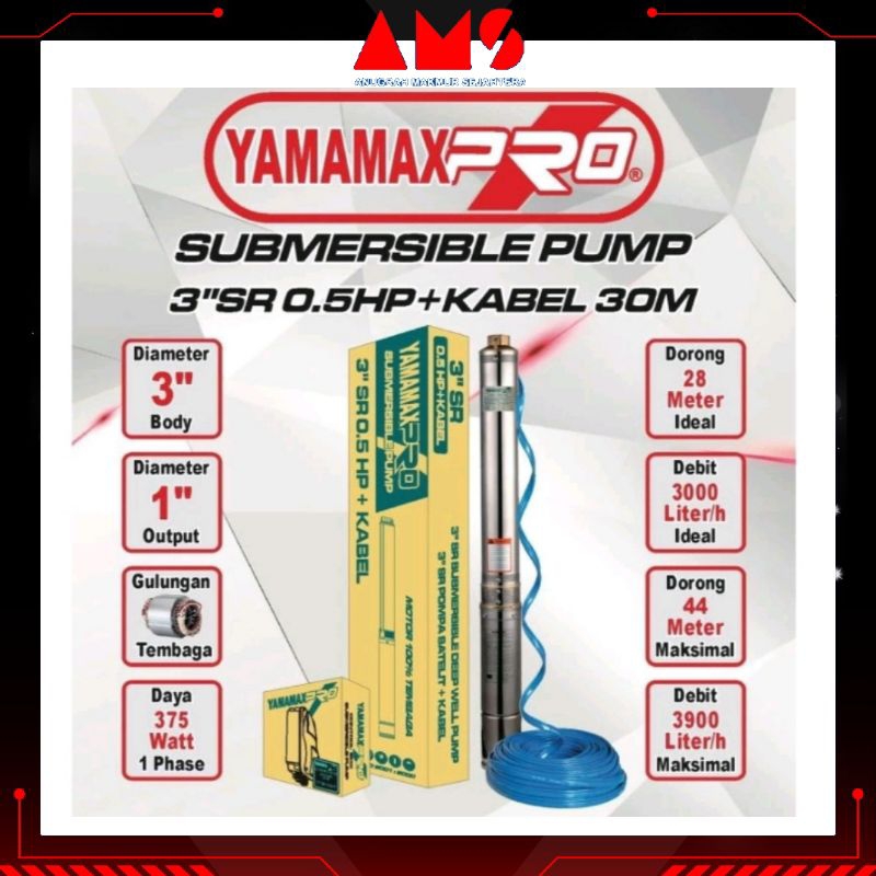 YAMAMAX-PRO MMS 3" SR 0.5 Hp Pompa Air Celup Satelit / Sumbmesible Pump / Pompa Sibel + Kabel 30 Meter
