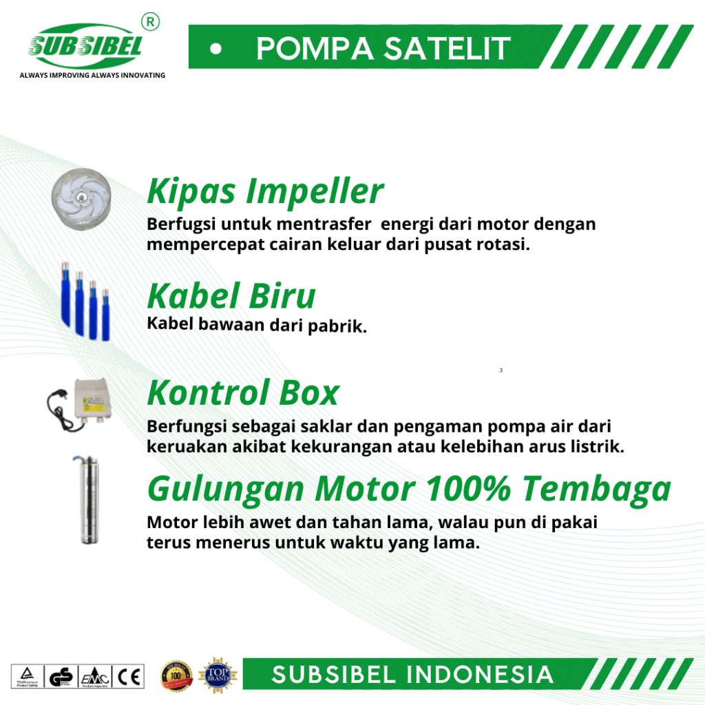 POMPA SUBMERSIBLE 3SDM 2/8 - 0.25HP + KABEL 30 METER - SUBSIBEL INDONESIA