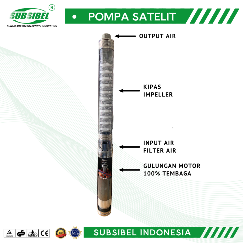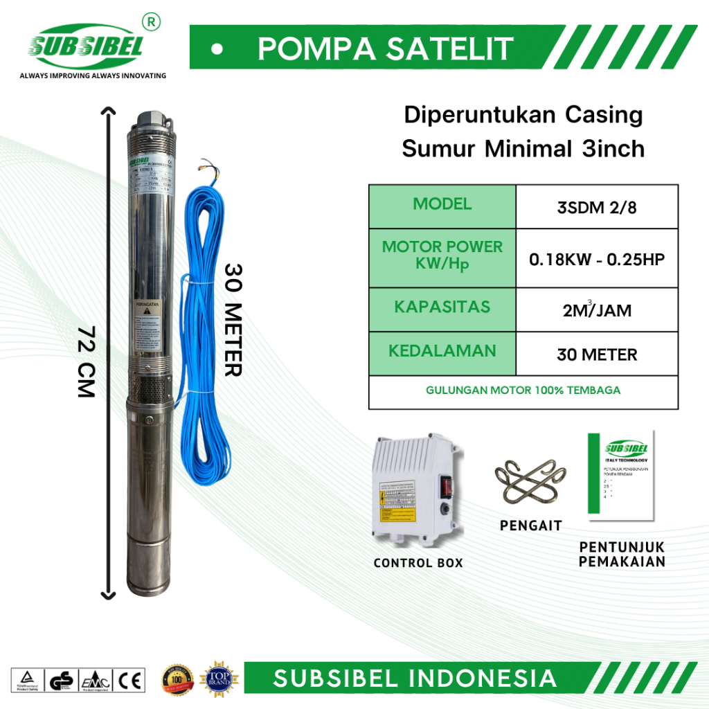 POMPA SUBMERSIBLE 3SDM 2/8 - 0.25HP + KABEL 30 METER - SUBSIBEL INDONESIA