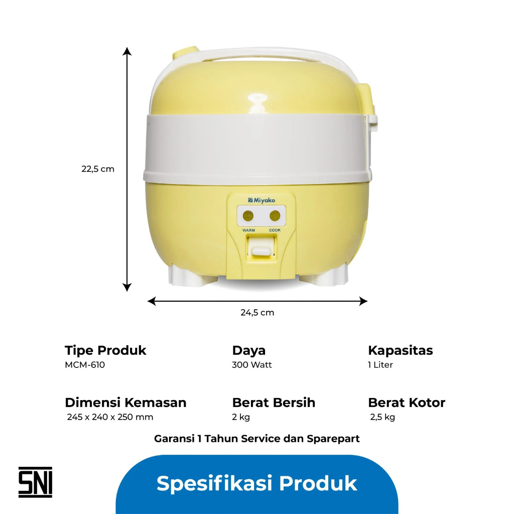 [Mall] Magic com Miyako MCM610 Rice Cooker 1 Liter - Magic Warmer Plus 3IN1 - Kuning