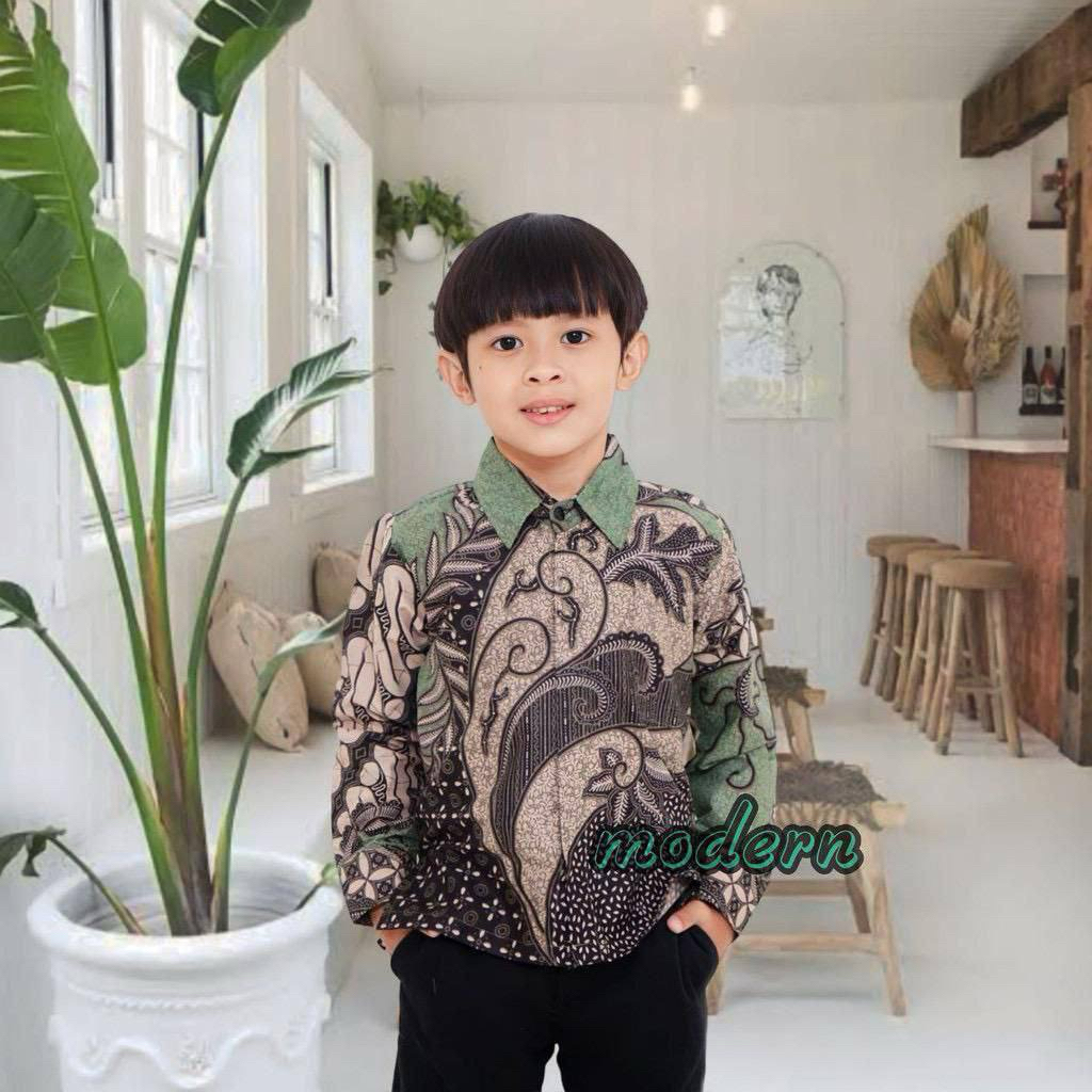 Kemeja Batik Anak Lengan Panjang Baju Batik Anak Umur 1-12 Tahun Batik Trendy Lengan Panjang Masa Kini Kemeja Anak Laki