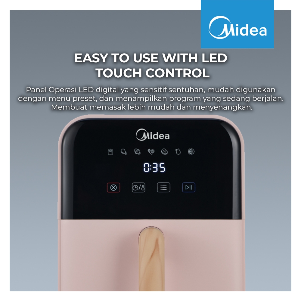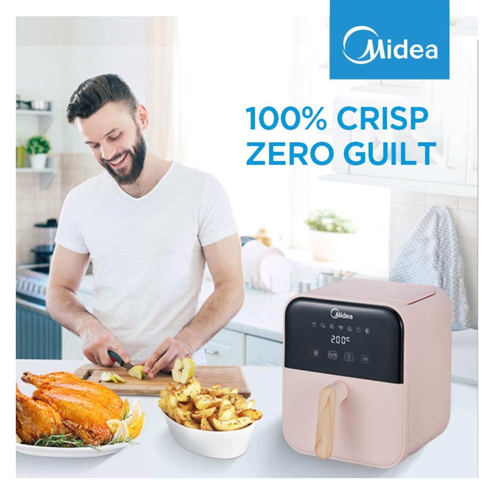 [Mall] Midea Air Fryer 4L 650W Low Watt MAD40007ADI Penggorengan Tanpa Minyak Digital Touch Pink